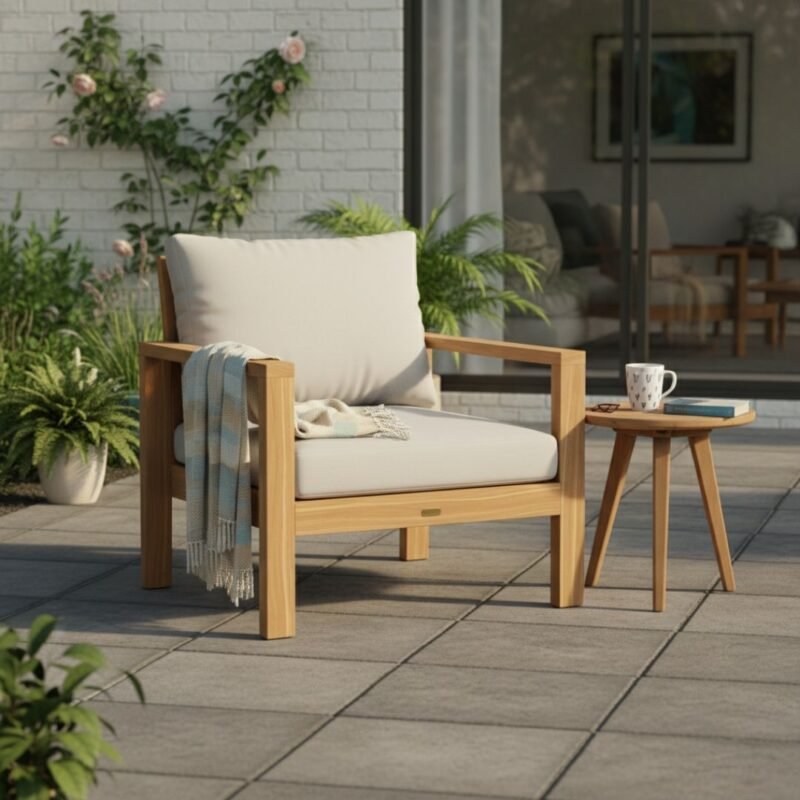 ZEPHLY Teakholz Loungesessel ‘Aura’ für Garten & Outdoor | Wetterfest