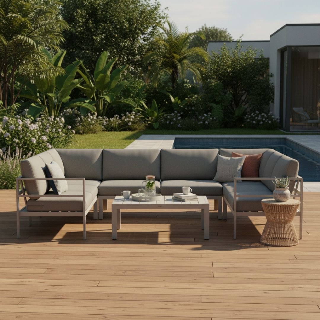 Gestalten Sie Ihre perfekte Outdoor-Oase mit dem modularen Lounge-Sofa von ZEPHLY. Dieses vielseitige Gartensofa passt sich flexibel Ihren Bedürfnissen an und kombiniert minimalistisches Design mit maximalem Komfort für entspannte Stunden auf Terrasse oder Balkon.